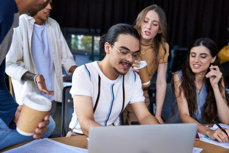 Group of young professionals are having a brainstorming session in the office, collaborating on a project