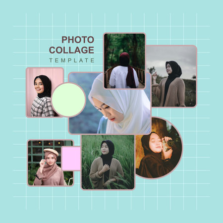 Mint-colored rectangular and circular shape photo collage perfect for a refreshing and modern approach to organizing photos.
