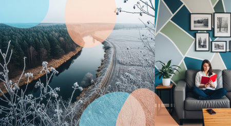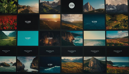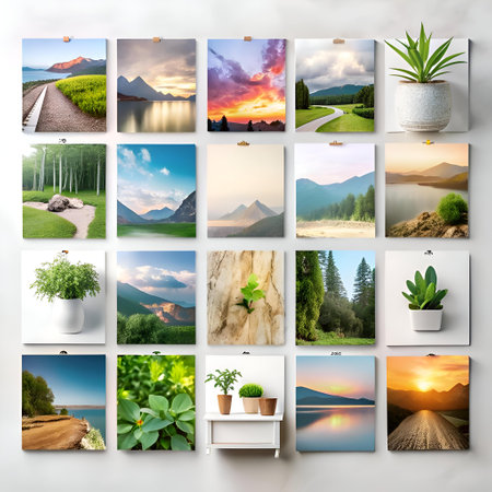 A mosaic of scenic images and textures that merge to form a captivating wall display. Each panel tells a story, from moonlit nights to sunlit mountains, celebrating the grandeur of the natural world. AI generation