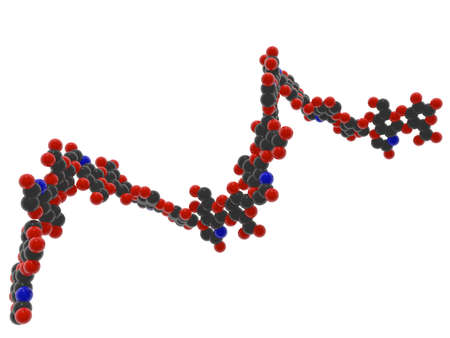 Glucagon molecule, 3D illustration. Glucagon is a peptide hormone, produced by alpha cells of the pancreas raising concentration of glucose in the bloodstream