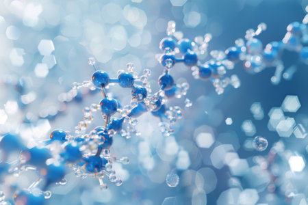 Clear molecular structures sit prominently against a soft blue backdrop highlighting scientific research and molecular chemistry.