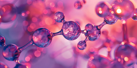 Abstract representation of a molecular structure with vibrant bokeh light effects in the background.