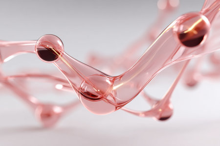 A 3D rendering of collagen and vitamin molecules glowing against a soft pastel background, symbolizing skincare solutions