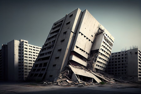 concrete building after city disaster aftermath earthquake, created with generative ai