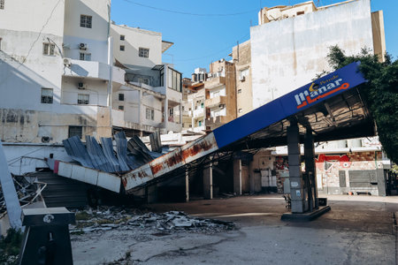 Beirut, Lebanon — 24.04.2023: Destroyed gas station in the Mar Mikael quarter in Beirut, damaged during an explosion in the port in August 2020