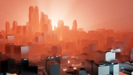 Nuclear war apocalypse concept. Explosion of nuclear bomb in city. City destroyed by atomic war. Creative artwork decoration in dark. Selective focus