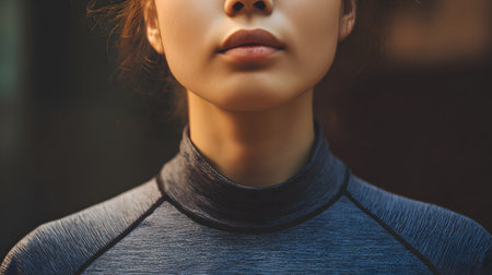 Fashion photo of a beautiful young woman in a black sweater. cropped face, close-up, faceless, selective focus