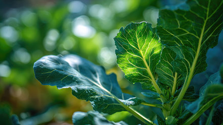 A close-up view of vibrant green leafy vegetables thriving in a garden bed. This image showcases the lush texture and health benefits of fresh produce.