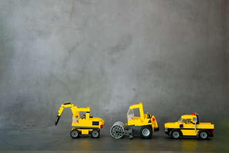 Transportation for the construction site, cargo truck, drill car and road roller. Machines for building services