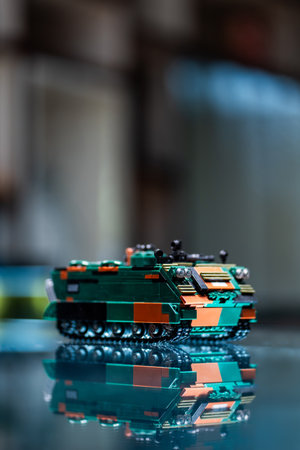plastic toy model of modern M113 armored personnel carrier, building block construction set APC