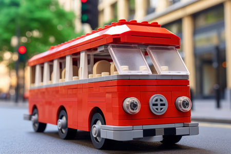 Mini Lego London Bus Toys Symbolize the Essence of London on Blurred Background