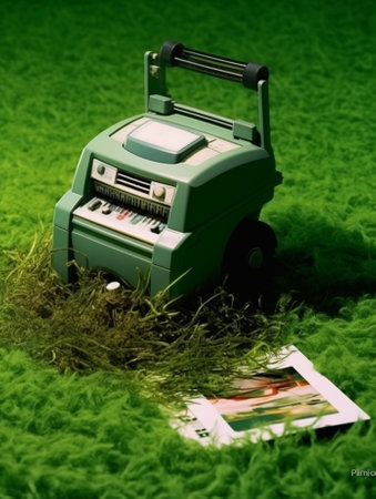 Generative AI : old blue typewriter on the grass
