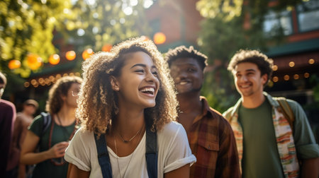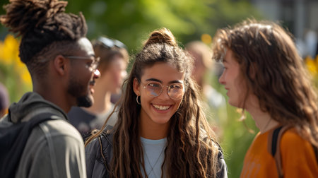 Smiling young adults enjoying leisure time together in a park with joyful vibes