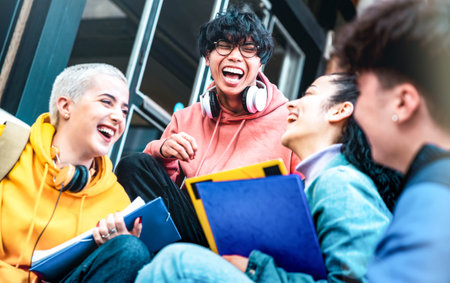 Cheerful University Students Engaged in Learning and Enjoying Campus Life