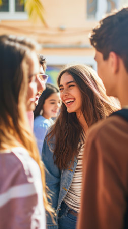 happy hispanic friends sharing laughter outdoors. social interactions, friendship, relationship