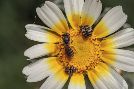 Macro Shot of Bee Pollinating Yellow Flower in Nature