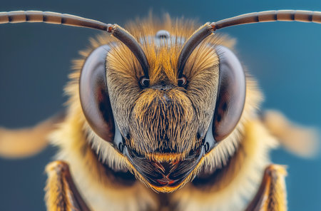 Explore an exquisite close-up view of a bee, showcasing its unique features and textures in stunning macro detail, perfect for nature lovers and educational purposes.