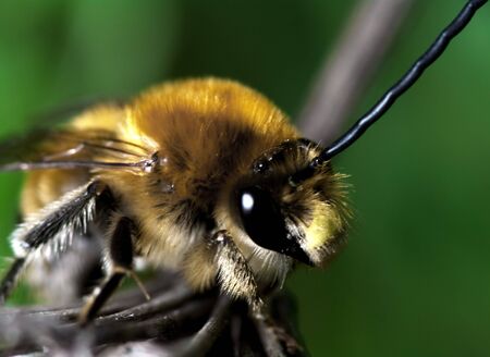 bee Macro lens, Closeup of face fluffy head of bee, Flying insect, Collected in the fabulous Badlands National Park in South Dakota.
