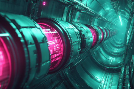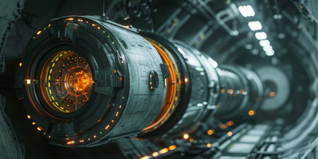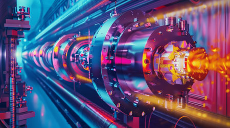 High-tech particle collider within an advanced scientific research facility, showcasing cutting-edge technology.