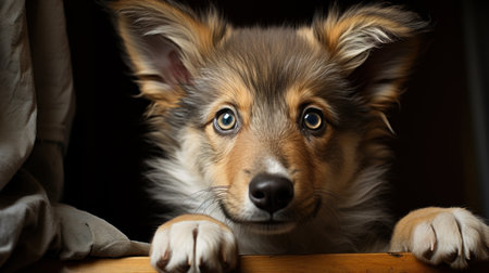 AI Generated. Curious Shepherd Mix Gazing with Alert Ears and Intelligent Eyes
