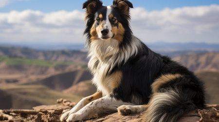 Border Collie standing against a sweeping landscape, its majestic stance exuding a captivating aura of alertness and athleticism