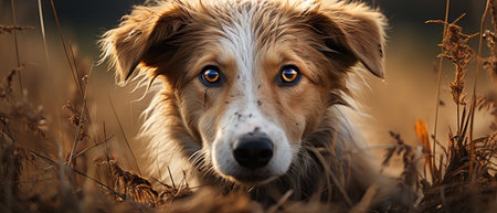 AI Generated. A brown and white dog with brown eyes looking at the camera