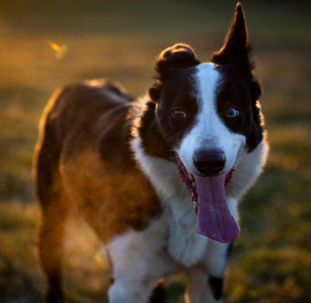 Portrait of a border collie dog in the sunset light.
