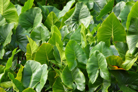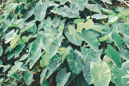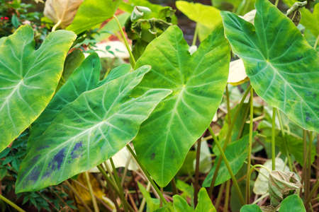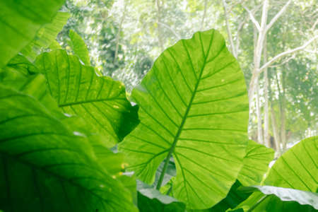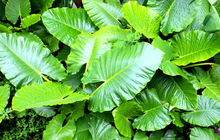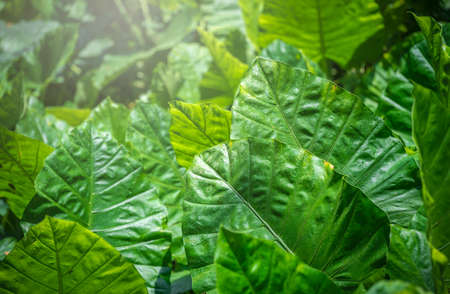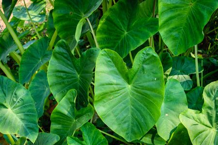 Tropical green leaves background. Taro leaves in the garden