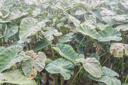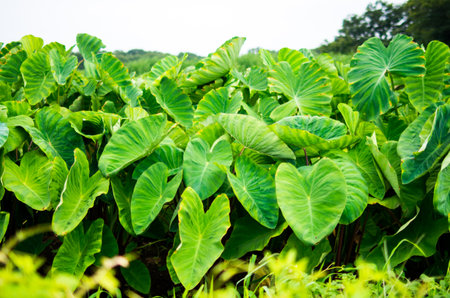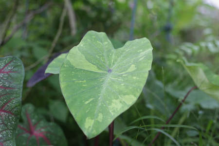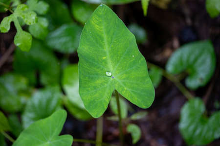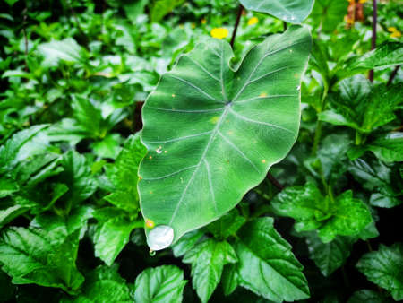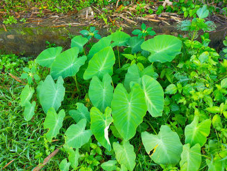 Taro leaves that grow in the middle of wild forests. The high carbohydrate content in taro makes it possible for complementary rice food ingredients