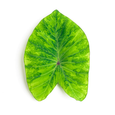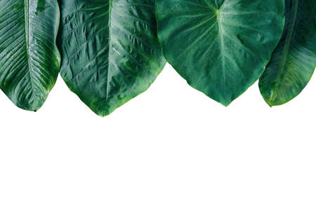 Large heart shaped green leaves of Elephant ear or taro (Colocasia species) the tropical foliage plant isolated on white background, clipping path included.