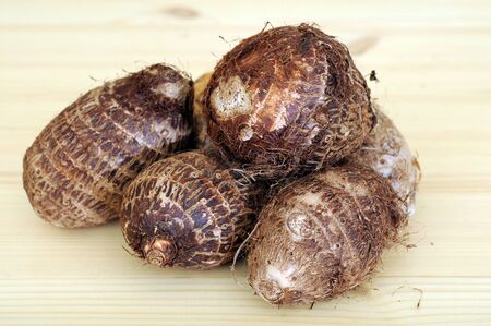 Fresh taro raw on wood background