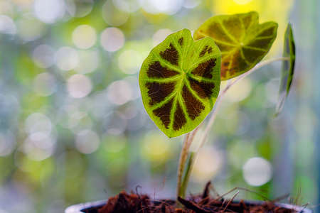 Colocasia affinis foliage, tropical leaf in forest, Young seedlings are growing