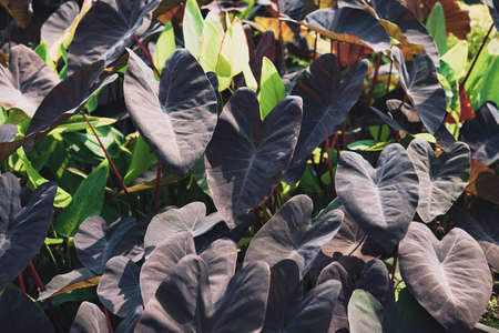 Colocasia Black Magic, Black color and heart shape leaf plant, Ornamental plant in a garden