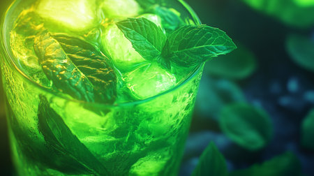 cold mojito cocktail with ice and fresh mint