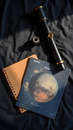 Creating a vision board with nature photos and notes on a wooden table in autumn light