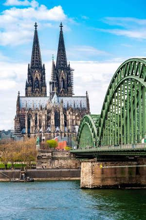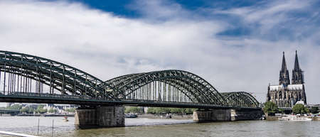 Cologne (Koln) in North Rhine Westphalia region of Germany, surprising the Cologne Cathedral (Kolner Dom) and the Hohenzaller Bridge over the Rhine River.