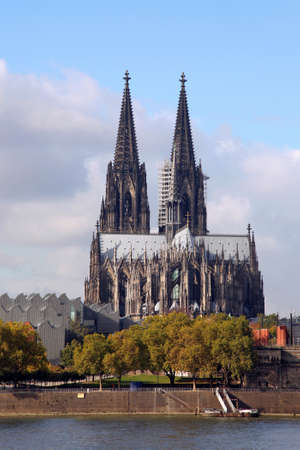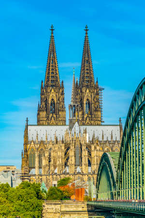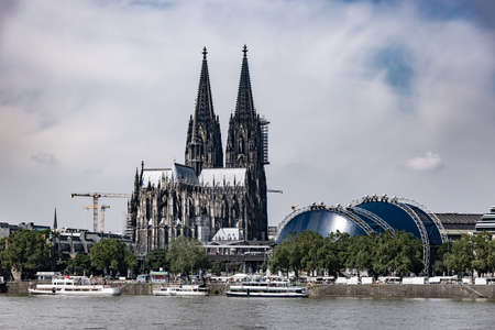 COLOGNE, GERMANY - CIRCA SEPTEMBER, 2019: view of Cologne Cathedral from riverfront.