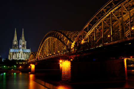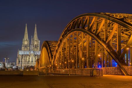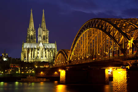 Bridge and the Dom of Cologne at night. Cologne, Germany