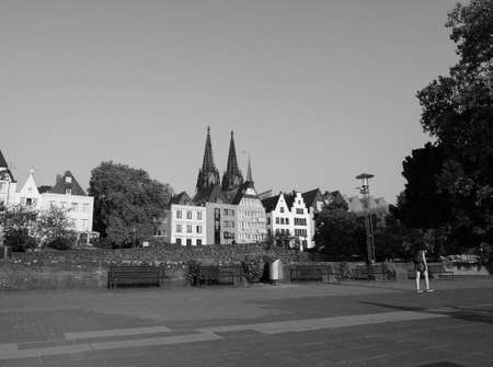 KOELN, GERMANY - CIRCA AUGUST 2019: Altstadt (meaning Old Town) in black and white