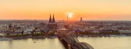 Panorama of Cologne with Cologne Cathedral and the Rhine on a beautiful summer evening