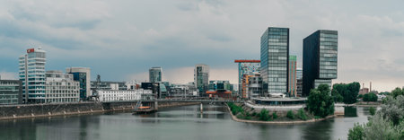 GERMANY, DUESSELDORF - AUGUST 13, 2020: Medienhafen. Dusseldorf cityscape with view on media harbor