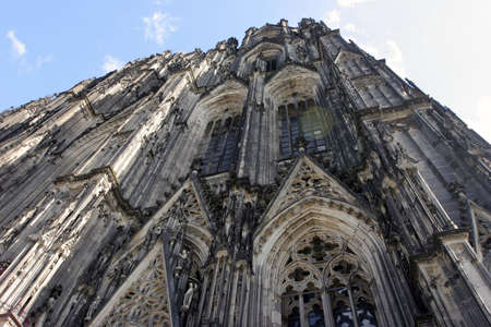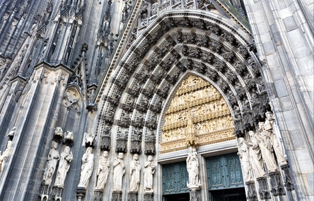 Western facade of the Cologne Cathedral, whith the entrance and gothic windows.