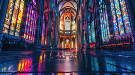 Gothic Cathedral with Intricate Stained Glass in Twilight