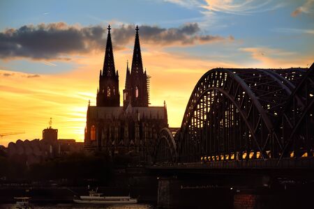Amazing sunset view on Cologne Cathedral and Hohenzollern Bridge in Koel, Germany. Tourism and travel by Germany