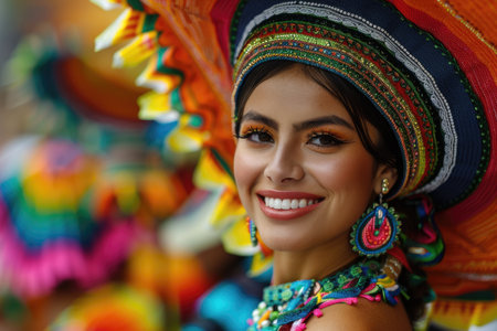 Cinco de Mayo celebration. Latin Woman in Traditional Mexican Dress Dancing at parade or cultural Festival in Mexico Latin America, ai generated