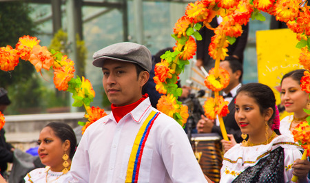 Quito, Ecuador - December 09, 2016: An unidentified people are dancing in parade in Quito, Ecuador