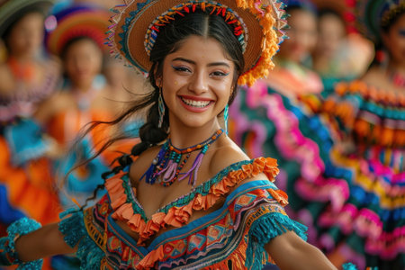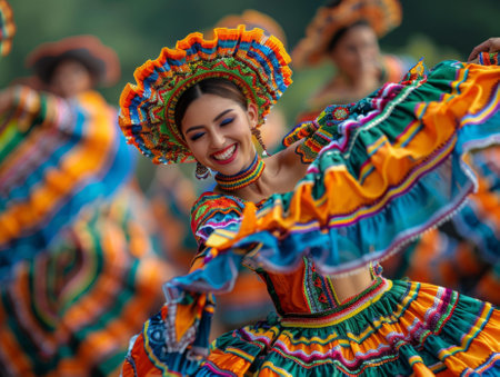 Vibrant Mexican Dancer in Traditional Dress Performing at Cultural Festival