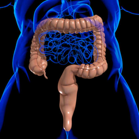 Large Intestine 3D Illustration Human Digestive System Anatomy For Medical Concept