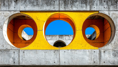 This captivating image showcases a series of circular concrete structures, emphasizing light and shadow interplay, perfect for modern architectural themes or abstract designs.