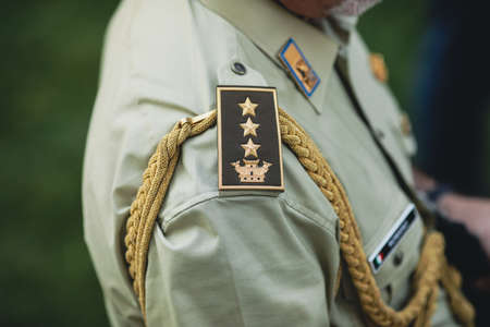 Bucharest, Romania - July 14, 2021: Shallow depth of field (selective focus) details with a three star general military rank of the Italian Army (Generale d'Esercito).